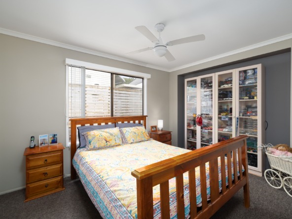 Step inside to a light-filled open-plan living and dining area with timber-look flooring, soft neutral tones, ceiling fans and air-conditioning for year-round comfort. Large windows and sliding doors create a bright, airy feel and flow seamlessly to the covered verandah perfect for morning coffee or entertaining friends.