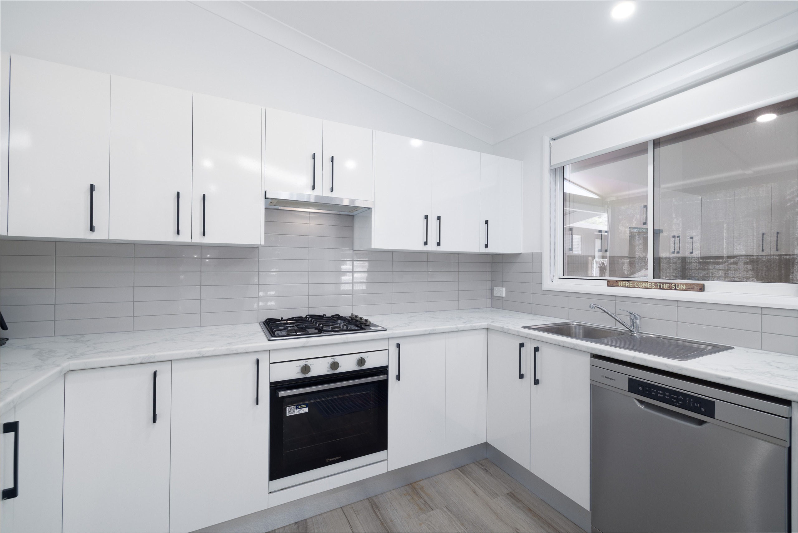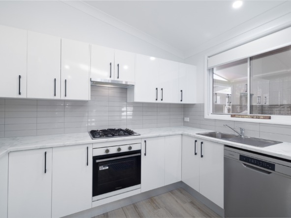 Featuring stone-look benchtops, gas cooktop, dishwasher, breakfast bar, tiled splashback and excellent storage.